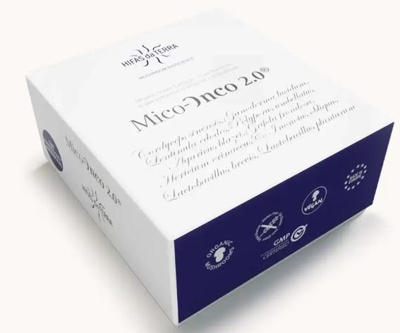 Contiene prebióticos de hongos en nanoemulsión (fórmula líquida fermentada) y probióticos en cápsulas, junto con vitaminas y micronutrientes que contribuyen al equilibrio nutricional durante tratamientos complejos.